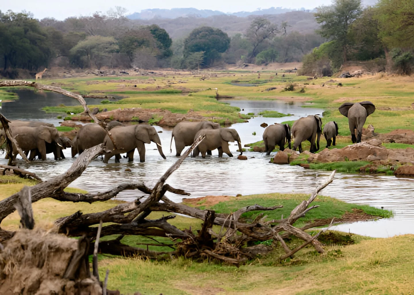 Tarangire National Park takes its name from the river that flows through it, providing a vital water source for a wide variety of wildlife, including giraffes, waterbucks, wildebeests, zebras, and a high concentration of elephants.