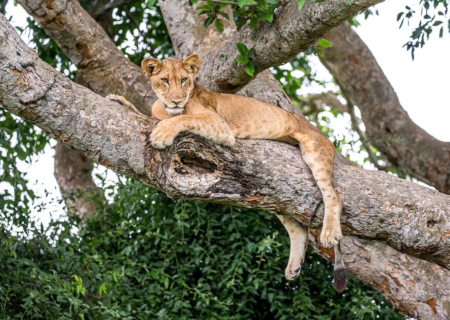 One of Tanzania's most fascinating sights is the tree-climbing lions of Lake Manyara National Park, a rare behavior not often seen elsewhere in Africa. Lions prefer open grasslands and acacia woodlands where their golden coats blend perfectly with the landscape as they stalk their prey.
