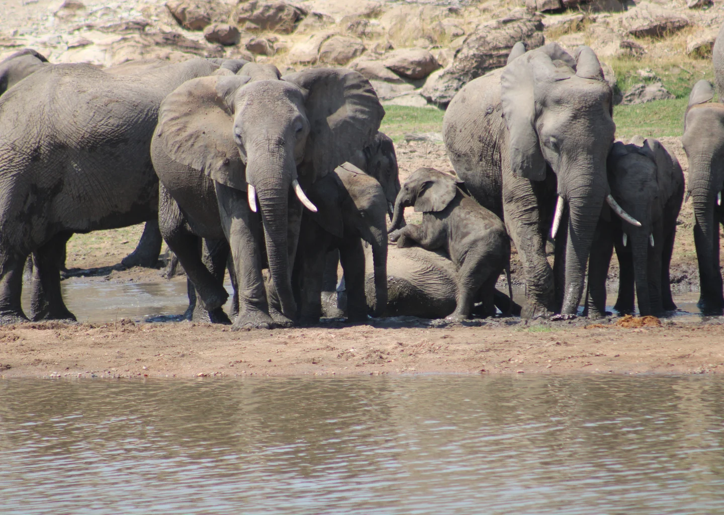 Older males often leave the herd to form bachelor groups, while all elephants share a love for drinking, swimming, and indulging in mud baths that cool their skin and protect them from insects.